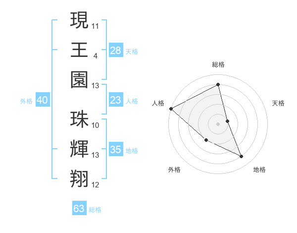 現王園 珠輝翔さんの総格は63画の4点!