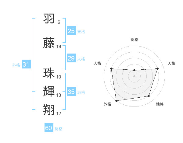 羽藤 珠輝翔さんの外格は31画の5点!