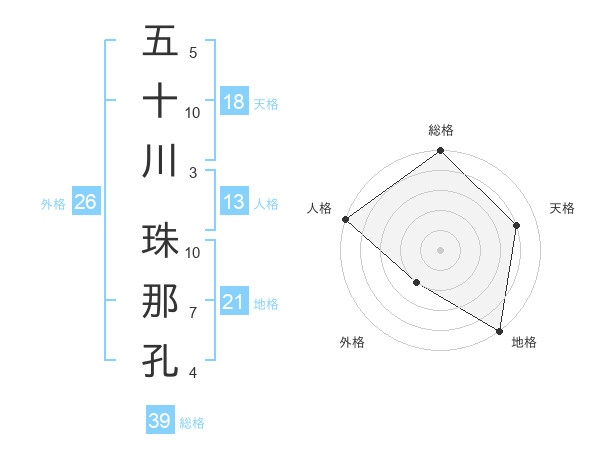 五十川 珠那孔さんを姓名の画数から五運を鑑定