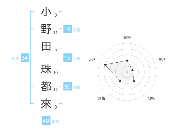 小野田 珠都來さんを姓名の画数から五運を鑑定