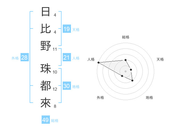 日比野 珠都來さんの人格は21画の5点!