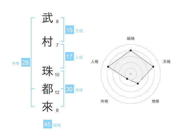 武村 珠都來さんの総格は45画の4点!