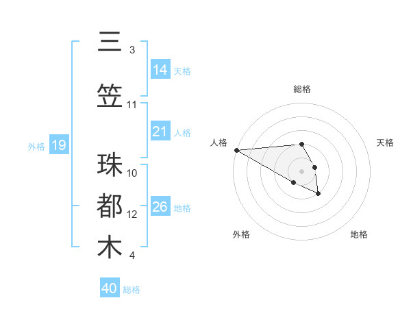 三笠 珠都木さんの天格は14画の1点!