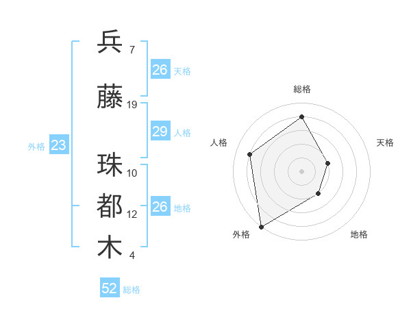 兵藤 珠都木さんを姓名の画数から五運を鑑定