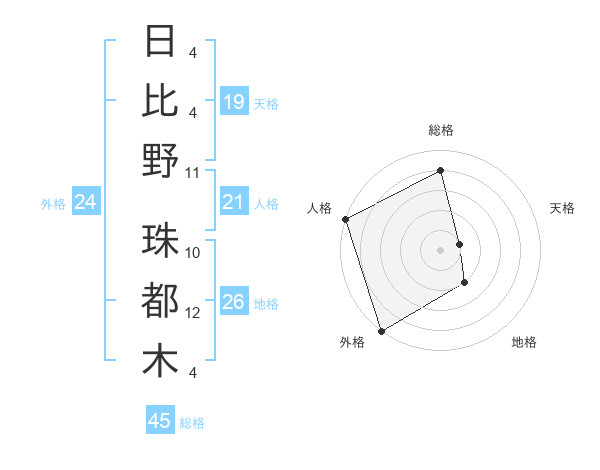 日比野 珠都木さんの外格は24画の5点!