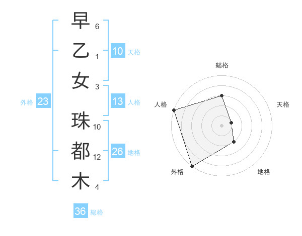 早乙女 珠都木さんを姓名の画数から五運を鑑定
