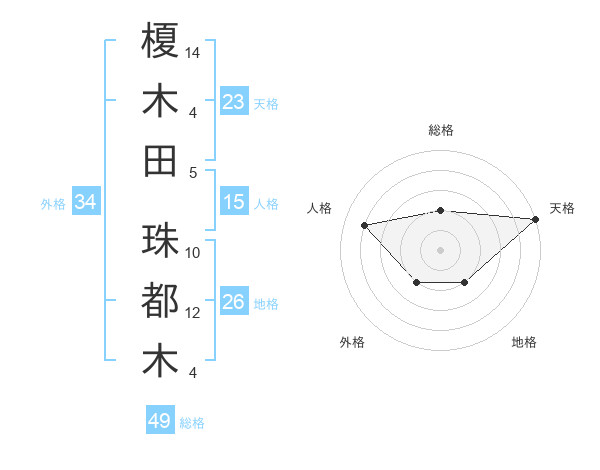 榎木田 珠都木さんの天格は23画の5点