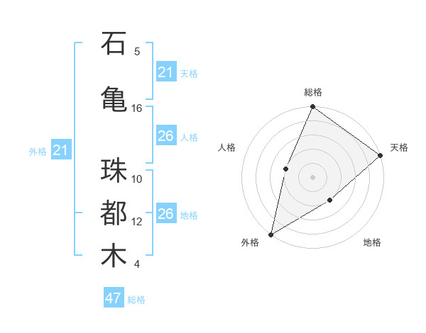 石亀 珠都木さんを姓名の画数から五運を鑑定