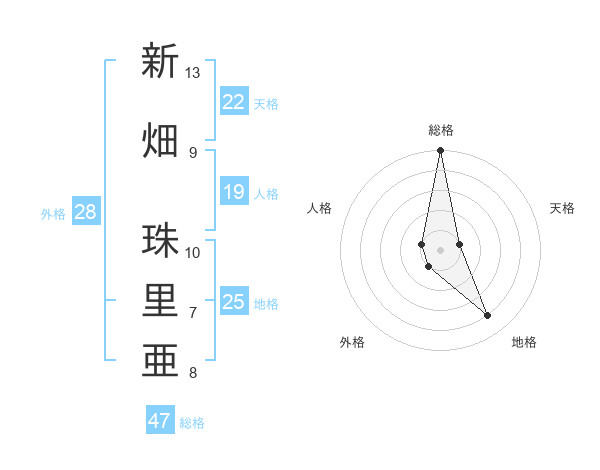 新畑 珠里亜さんの総格は47画の5点!