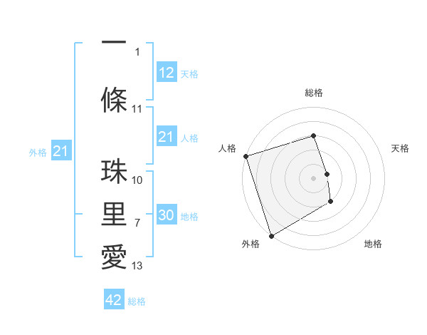 一條 珠里愛さんを姓名の画数から五運を鑑定