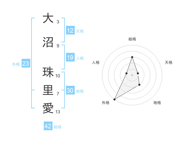 大沼 珠里愛さんを姓名の画数から五運を鑑定