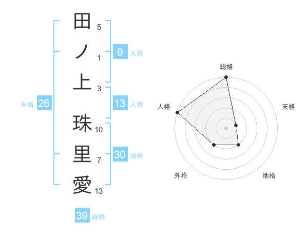田ノ上 珠里愛さんを姓名の画数から五運を鑑定