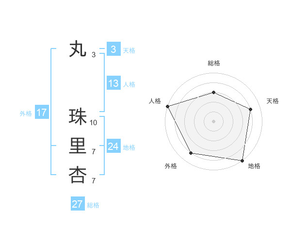 丸 珠里杏さんの総格は27画の3点!