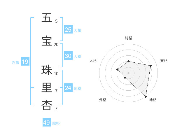 五宝 珠里杏さんを姓名の画数から五運を鑑定