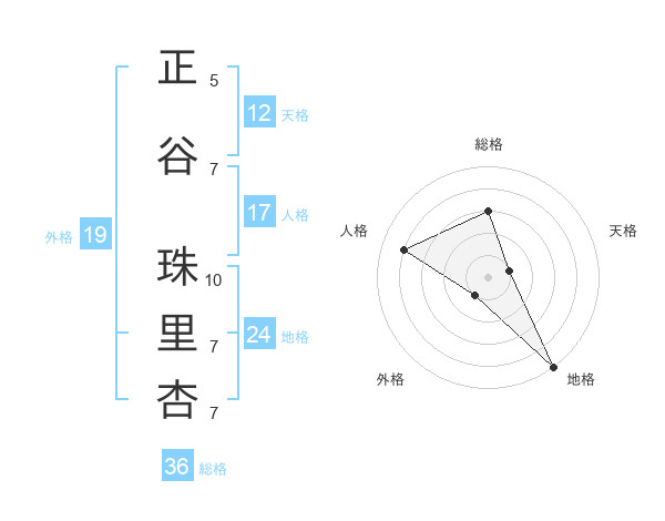 正谷 珠里杏さんを姓名の画数から五運を鑑定