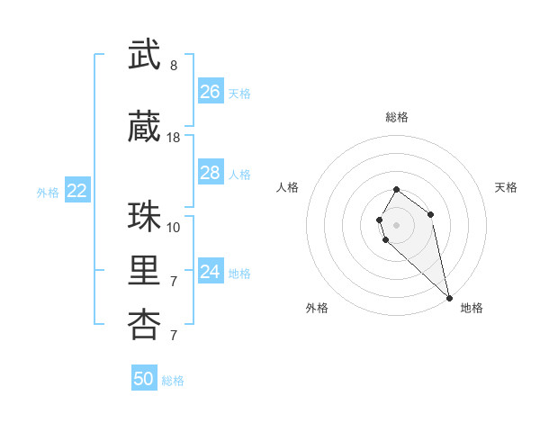 武蔵 珠里杏さんを姓名の画数から五運を鑑定