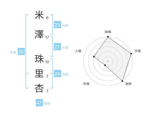 米澤 珠里杏さんを姓名の画数から五運を鑑定