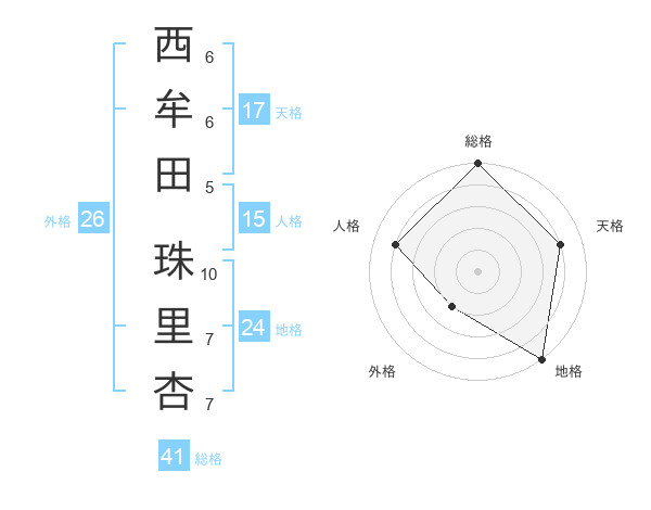 西牟田 珠里杏さんを姓名の画数から五運を鑑定
