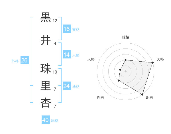 黒井 珠里杏さんを姓名の画数から五運を鑑定