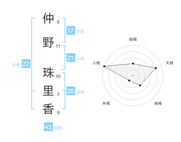 仲野 珠里香さんを姓名の画数から五運を鑑定