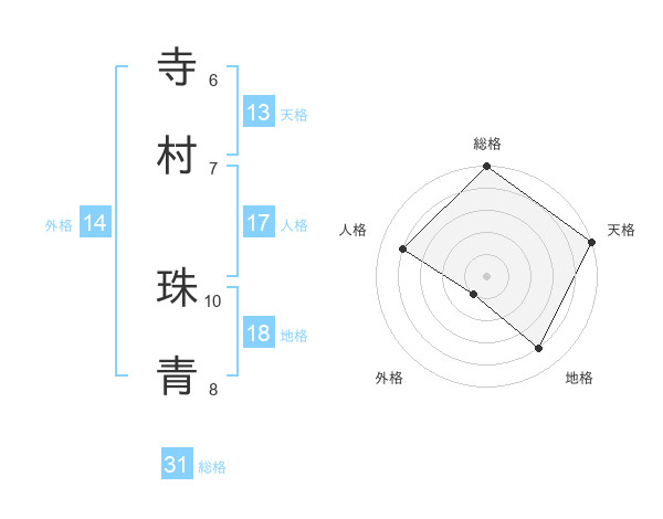寺村 珠青さんの総格は31画の5点!