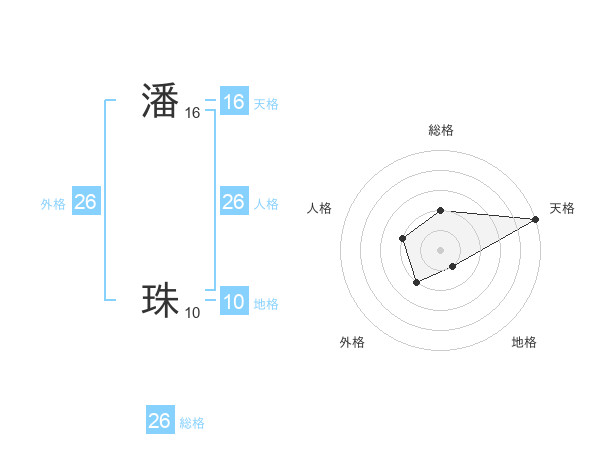 潘 珠さんの総格は26画の2点!