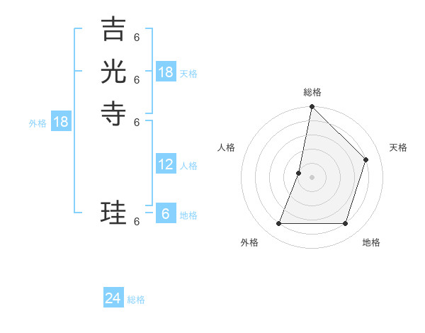 吉光寺 珪さんの総格は24画の5点!