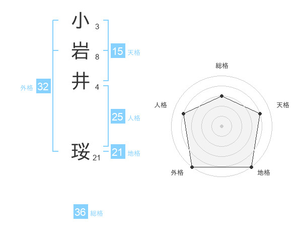小岩井 珱さんの天格は15画の4点!
