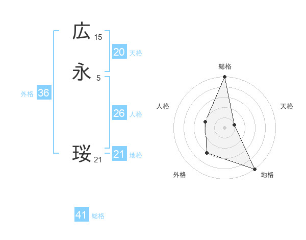 広永 珱さんの総格は41画の5点!