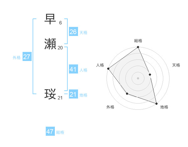 早瀬 珱さんの総格は47画の5点!