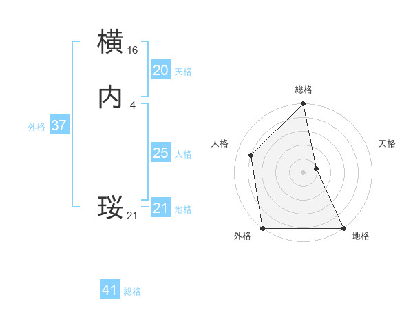 横内 珱さんの外格は37画の5点!