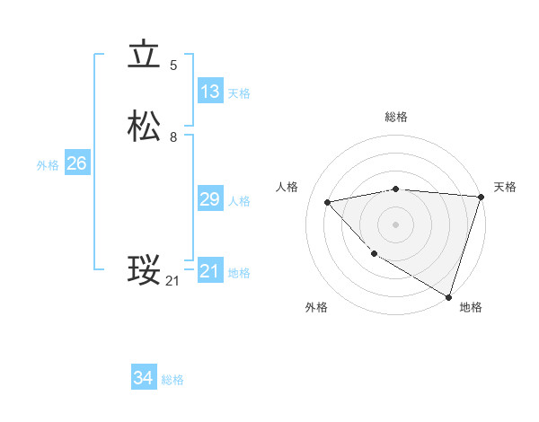 立松 珱さんの天格は13画の5点!