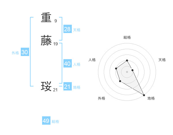 重藤 珱さんの総格は49画の2点!