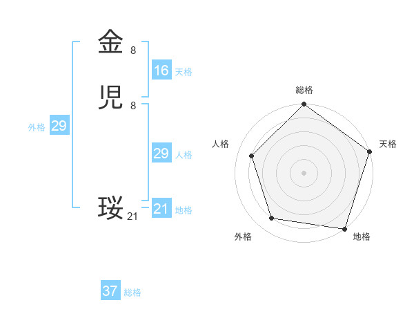 金児 珱さんの総格は37画の5点!