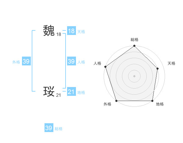 魏 珱さんの総格は39画の5点!
