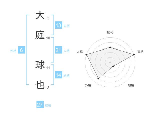 大庭 球也さんの天格は13画の5点!