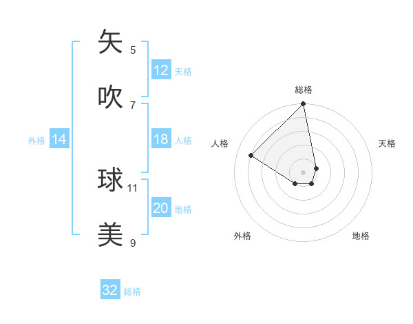 矢吹 球美さんの総格は32画の5点!