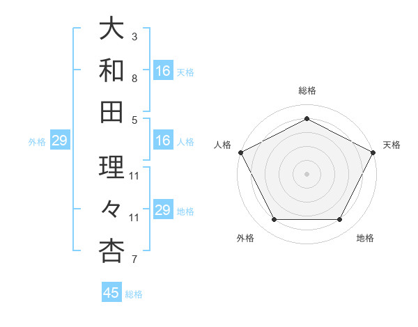 大和田 理々杏さんを姓名の画数から五運を鑑定