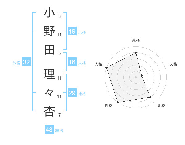 小野田 理々杏さんを姓名の画数から五運を鑑定