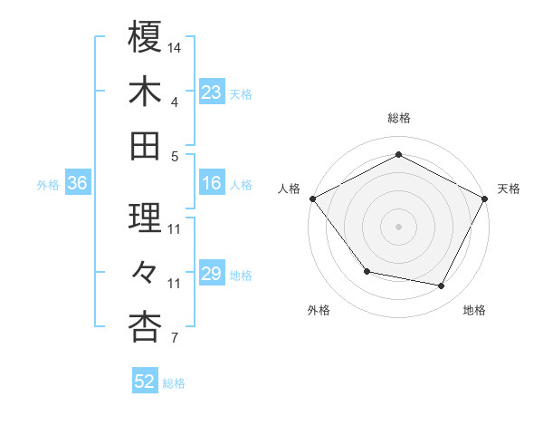 榎木田 理々杏さんの総格は52画の4点