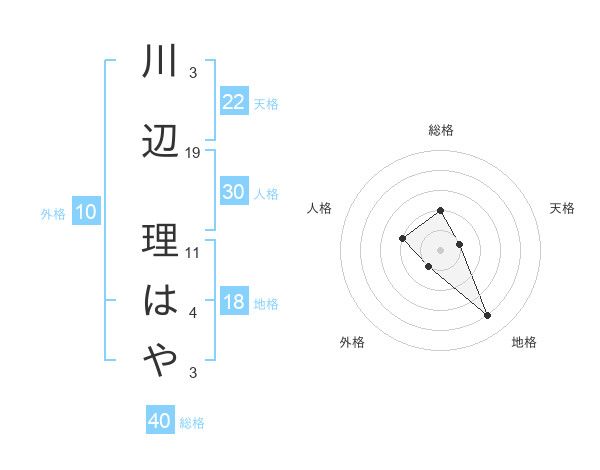 川辺 理はやさんを姓名の画数から五運を鑑定