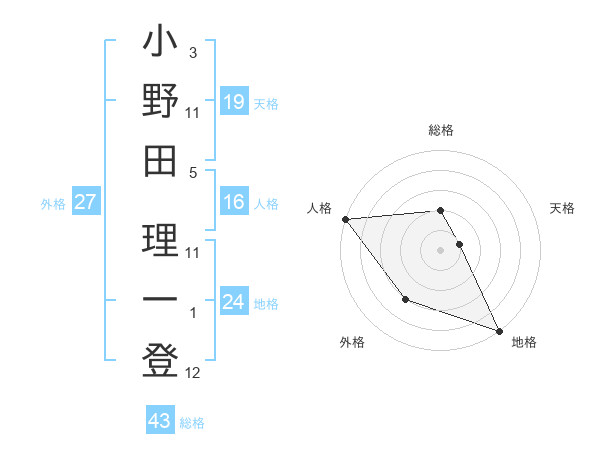 小野田 理一登さんを姓名の画数から五運を鑑定