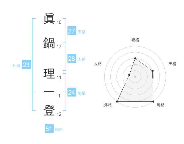 眞鍋 理一登さんの総格は51画の3点