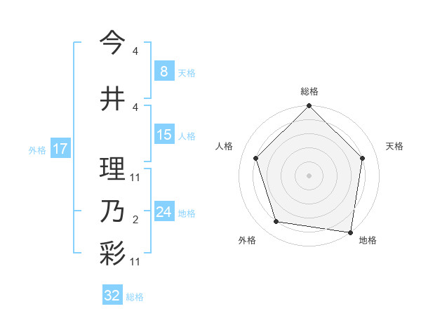 今井 理乃彩さんを姓名の画数から五運を鑑定
