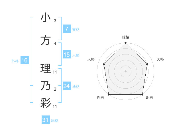 小方 理乃彩さんの総格は31画の5点!