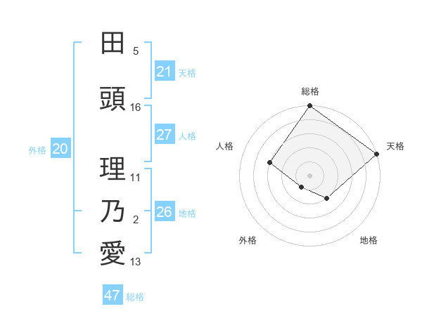 田頭 理乃愛さんを姓名の画数から五運を鑑定
