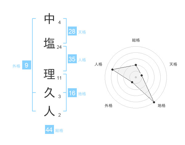 中塩 理久人さんを姓名の画数から五運を鑑定