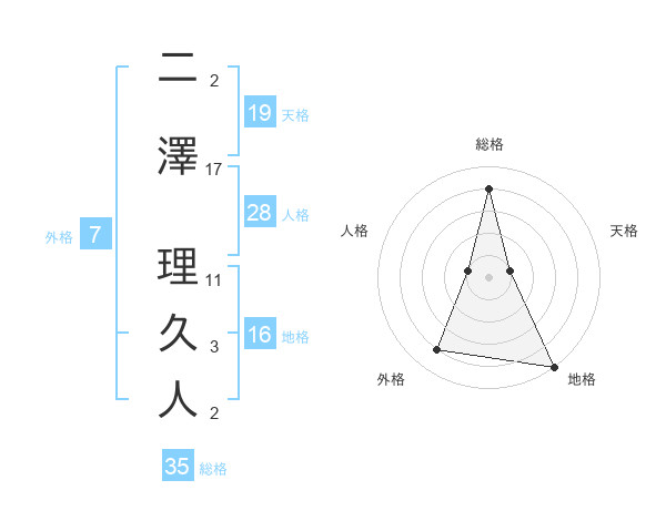 二澤 理久人さんを姓名の画数から五運を鑑定