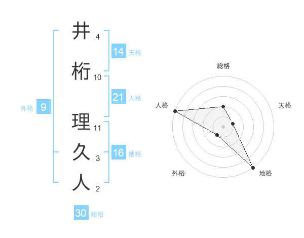 井桁 理久人さんを姓名の画数から五運を鑑定