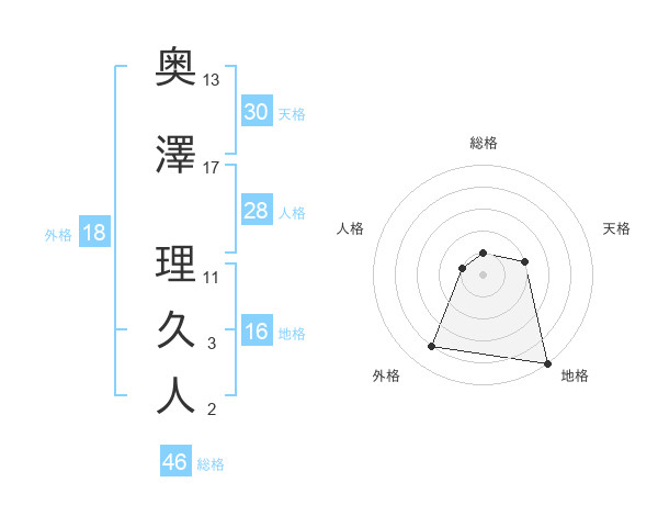 奥澤 理久人さんの総格は46画の1点!
